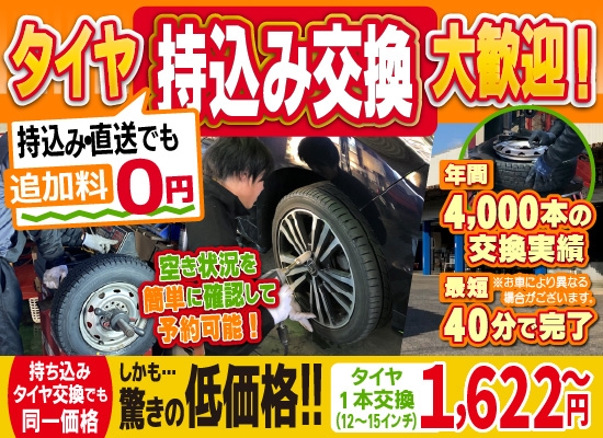 最近はネットで購入した格安タイヤやスタッドレスタイヤへの交換ニーズもある為、当店ではより便利なショップを目指し、交換のみのお客様も大歓迎しております。
